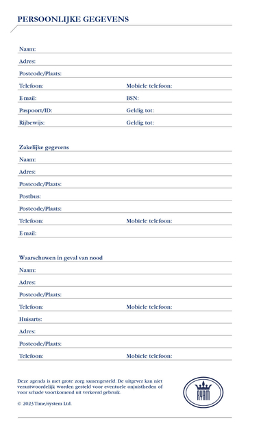 | Soort Persoonlijke Agenda: | Agenda |