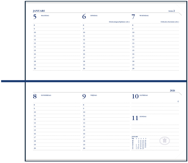 | Pagina indeling: | 7 dagen per 2 pagina's |