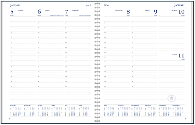 | Pagina indeling: | 7 dagen per 2 pagina's |