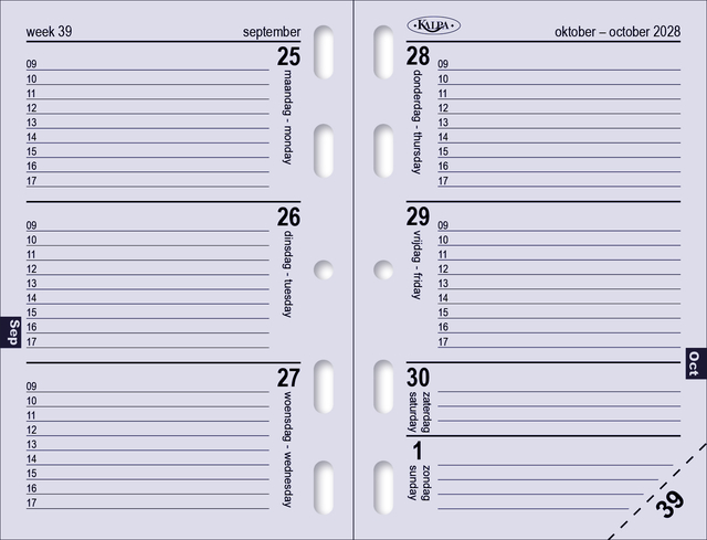 | Pagina indeling: | 7 dagen per 2 pagina's |