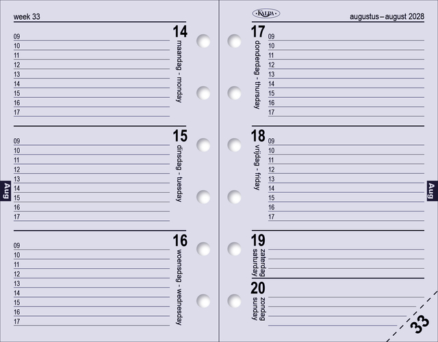 | Pagina indeling: | 7 dagen per 2 pagina's |