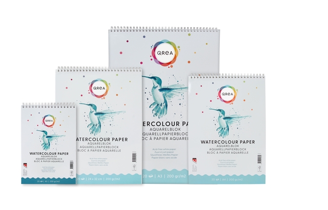 * Of je nu een beginner bent of een professionele kunstenaar, dit aquarelblok van Qrea is geschikt voor iedereen! * Ideaal papier voor de eerste stappen in het aquarelleren en andere natte technieken.* Dit aquarelblok heeft een dubbele spiraal. * Het bevat zuurvrij papier, dat niet vergeelt niet na verloop van tijd. * Het harde karton aan de onderkant zorgt voor optimaal gebruiksgemak. * Afmeting: A4 formaat. * Blok à 20 vellen 200 grams papier. * Diverse formaten beschikbaar. * Geproduceerd in Nederland.