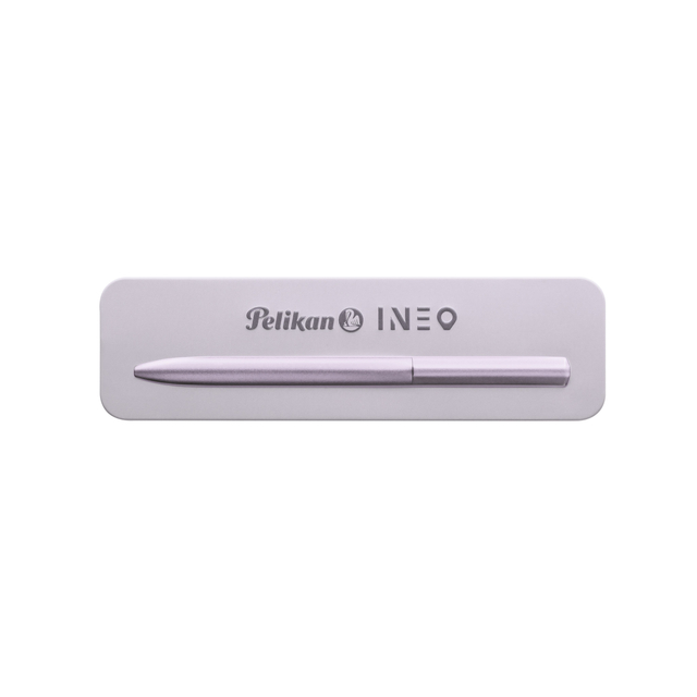 * Uniek en opvallend - dat is INEO, de nieuwe serie schrijfinstrumenten van Pelikan. * De collectie wordt gekenmerkt door een unieke designtaal. * Het gezandstraalde oppervlak zorgt voor een matte afwerking van de kleurrijke geanodiseerde pennen, waardoor ze parelen in het licht. * De uitstraling is minimalistisch met rustige kleuren en hoogwaardige verwerking van natuurlijke materialen. * Het bijzondere detail van de Ineo is de ontbrekende clip. * Een kenmerk dat hem onderscheidt van andere schrijfinstrumenten in zijn soort en hem tot een blikvanger maakt in het dagelijks leven. * Balpen met draaimechanisme in metalen geschenketui. * Vervangbare king-size vulling met blauwe, documentbestendige inkt in overeenstemming met ISO 12757-2