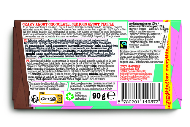 Properties "Chocolade Tony's Chocolonely melk everything reep 90 gram"
