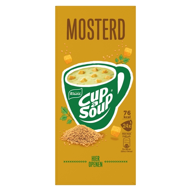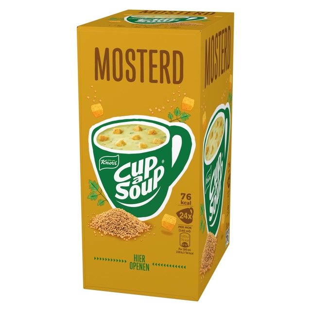 * Cup-a-Soup Mosterd: een snelle, hartige opkikker die je weer energie geeft om door te gaan! Dit is een heerlijke volle en krachtige soep, met een milde mosterdsmaak.