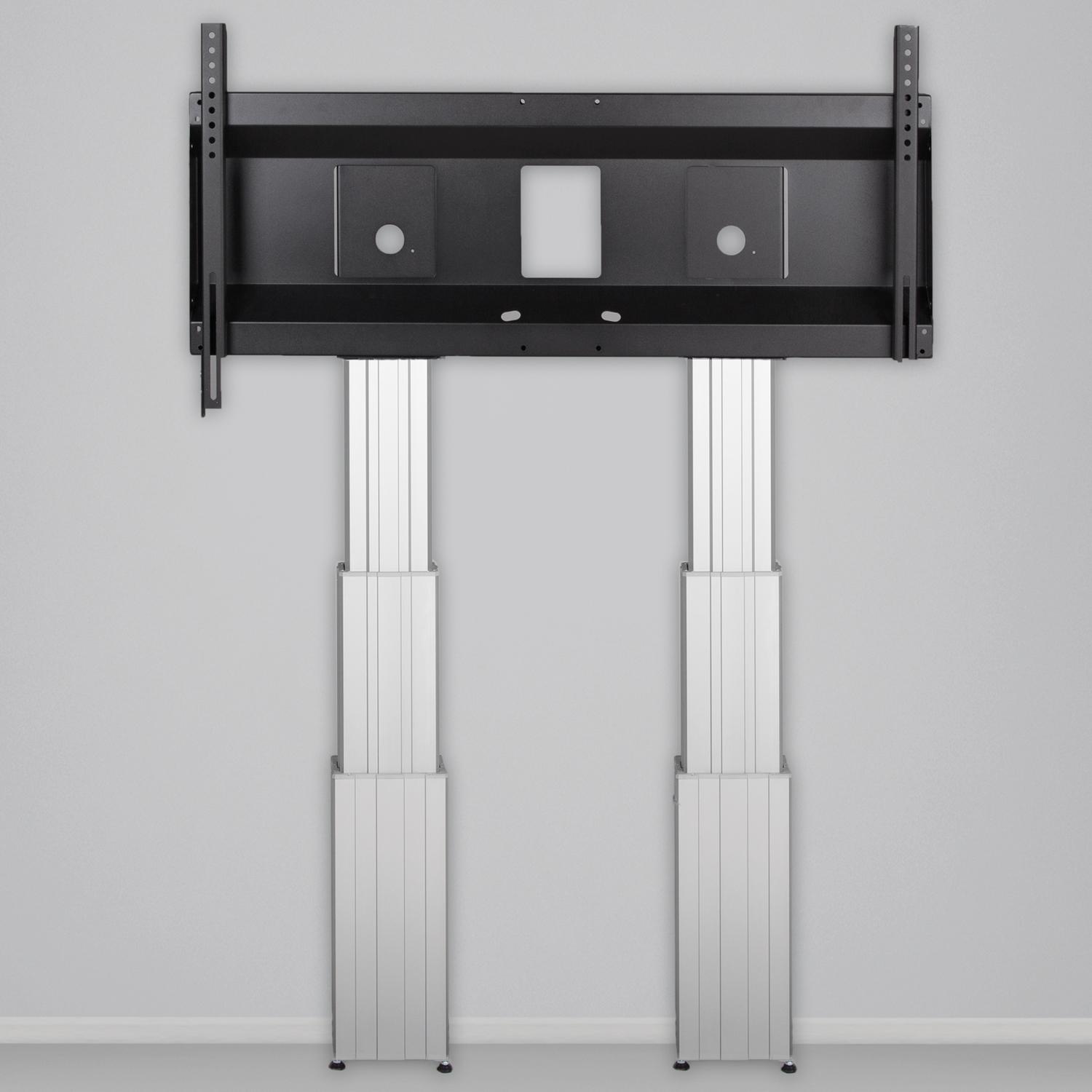 Elektrisch in hoogte verstelbare monitor muurbeugel met XL-beeldschermbeugel. Speciaal ontwikkeld voor montage van zware schermen. De gemotoriseerde, in hoogte verstelbare monitor muurbeugel is voorzien van een extra breed frame voor display montage. Het systeem wordt geleverd met twee driedelige Conen Mounts mastkolommen en is 70 cm in hoogte verstelbaar. Het product is verdeeld in 3 pakketten. Elk van de pakketten is geschikt voor koeriersdiensten.