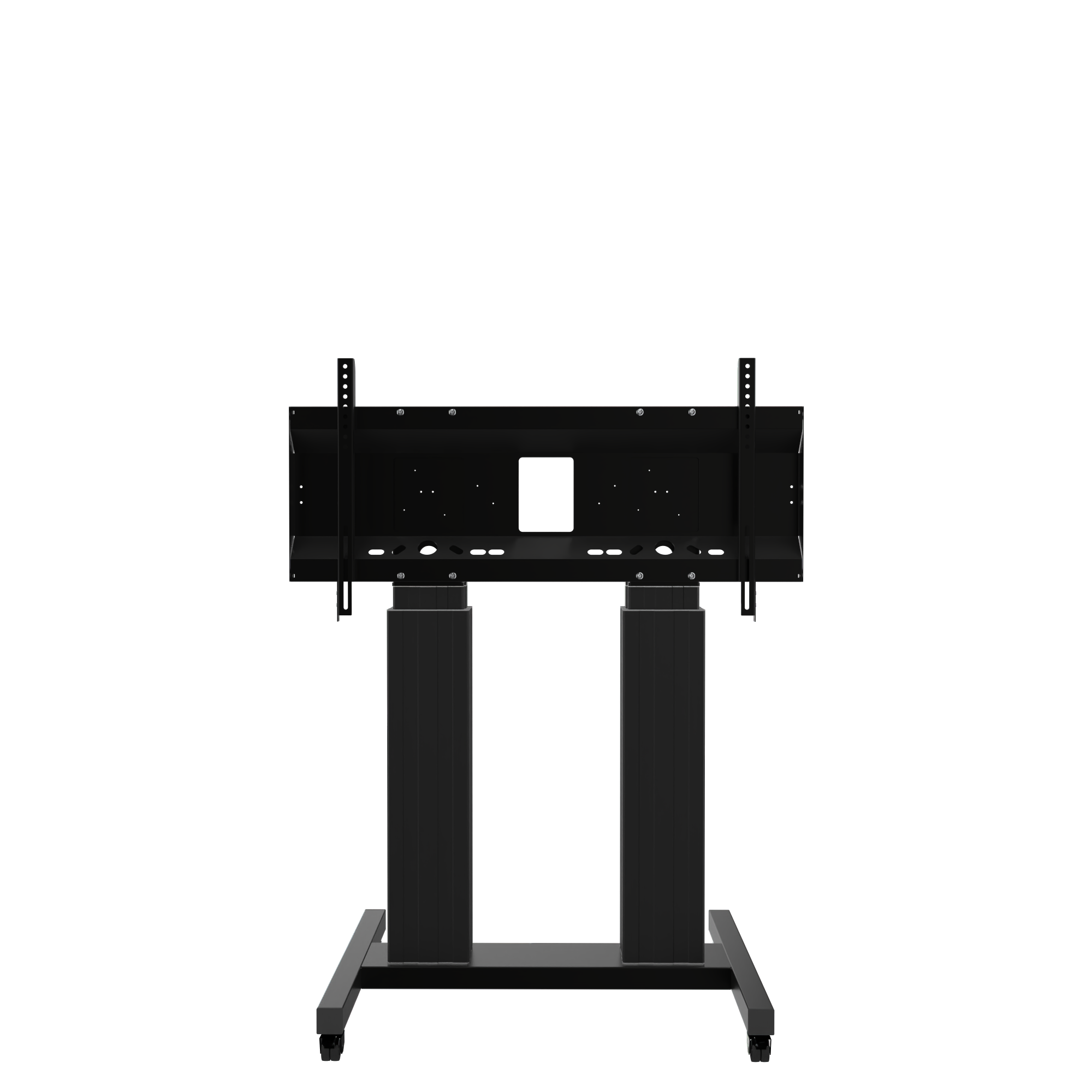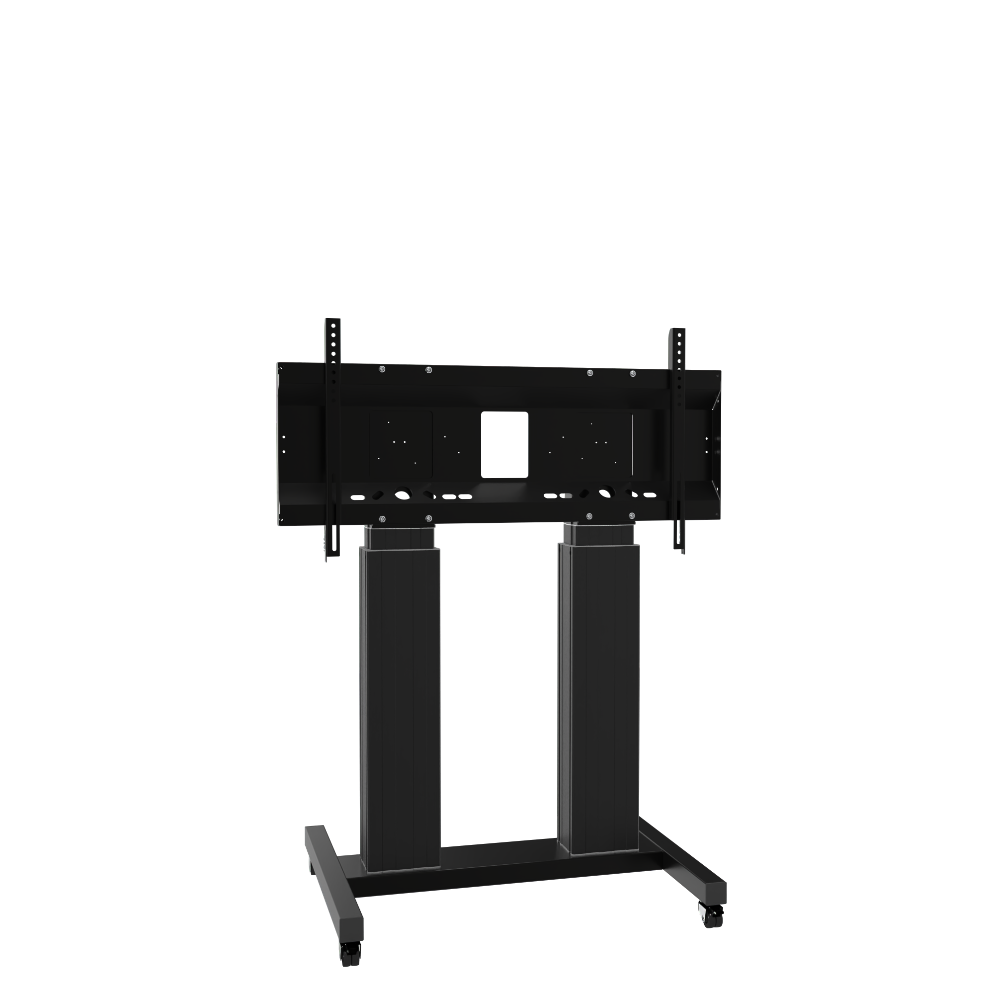 Elektrisch in hoogte verstelbare verrijdbare tv standaard met XL-frame voor het plaatsen van displays. De verrijdbare tv standaard is ontworpen voor gebruik met interactieve touchscreen-displays. De elektrisch in hoogte verstelbare trolley wordt geleverd met een extra brede displayhouder. De mobiele monitorstandaard is uitgerust met twee gemakkelijk telescopische mastkolommen met een hoogteverstelling van 50 cm. Er zijn optionele handgrepen beschikbaar voor montage aan de linker- en rechterkant van het display voor een gemakkelijke en veilige verplaatsing van het rolstatief. Het product wordt gedemonteerd geleverd in vier verpakkingseenheden en kan per pakketdienst worden verzonden.
