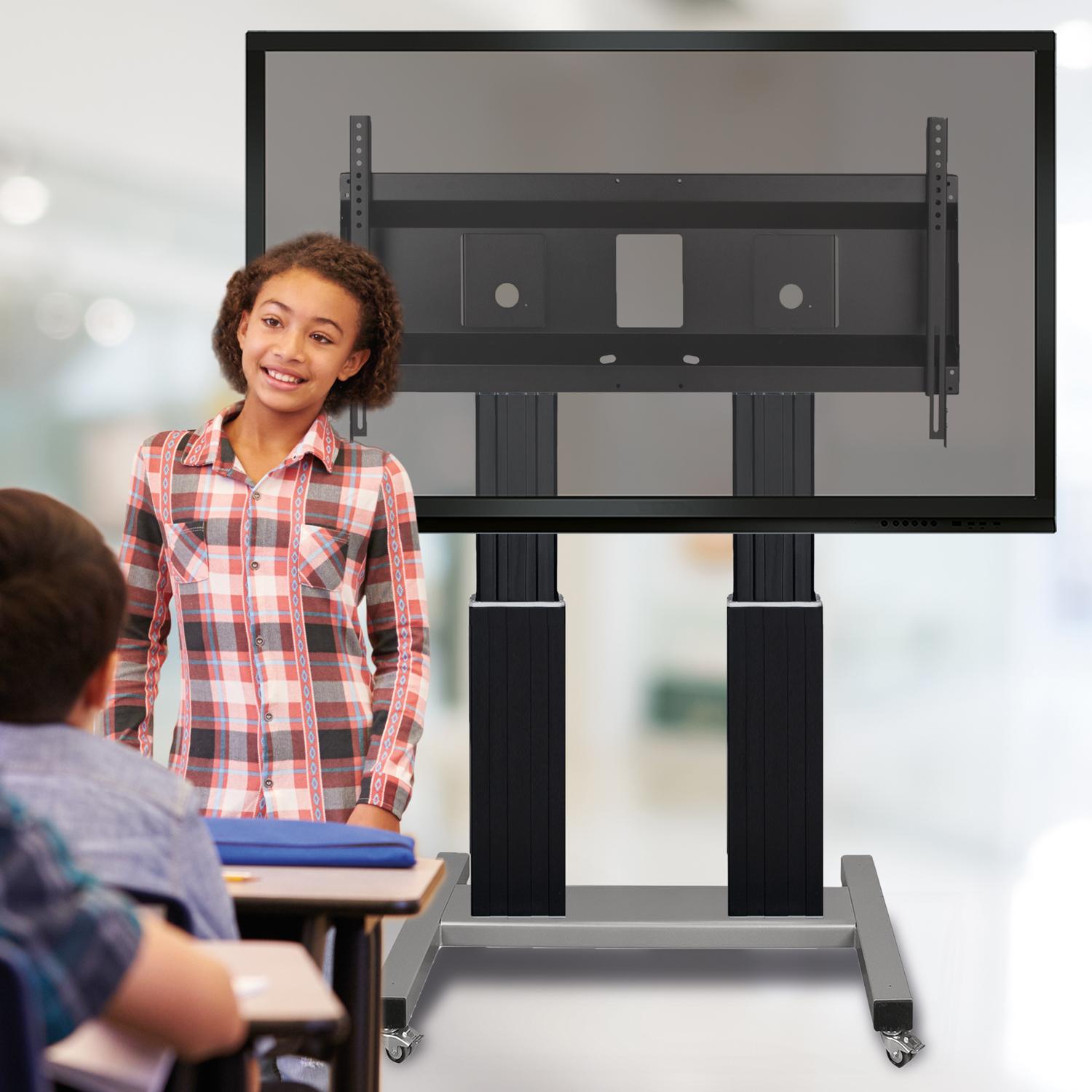 Elektrisch in hoogte verstelbare heavy duty XL tv-trolley, verrijdbaar monitorstatief met 50 cm slag
