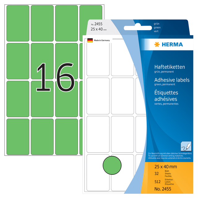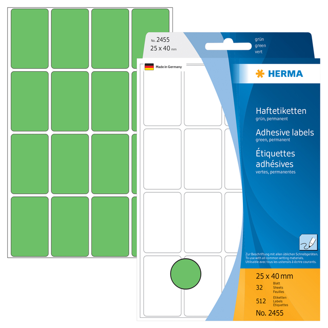 Properties "Etiket HERMA 2455 25x40mm groen 512stuks"