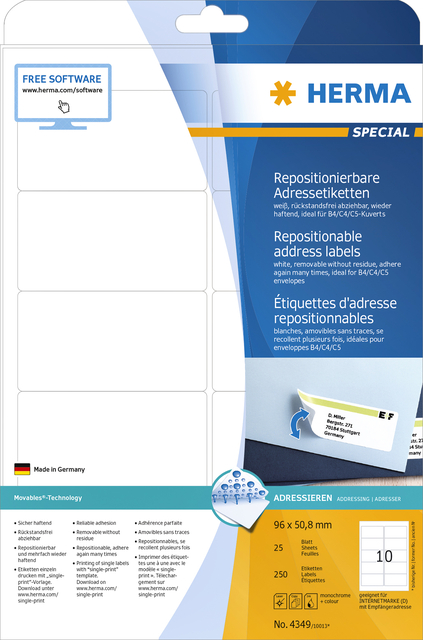 Herma is een toonaangevende fabrikant van zelfklevende etiketten en etiketteersystemen. Het bedrijf is opgericht in 1906 in het Duitse Stuttgart en heeft zich sindsdien ontwikkeld tot een wereldwijde speler op het gebied van labeloplossingen. Het merk staat bekend om zijn hoogwaardige producten en innovatieve oplossingen voor een breed scala aan toepassingen.