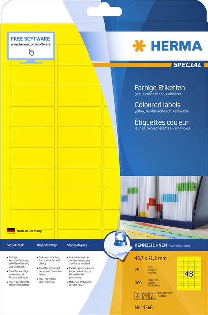 Herma is een toonaangevende fabrikant van zelfklevende etiketten en etiketteersystemen. Het bedrijf is opgericht in 1906 in het Duitse Stuttgart en heeft zich sindsdien ontwikkeld tot een wereldwijde speler op het gebied van labeloplossingen. Het merk staat bekend om zijn hoogwaardige producten en innovatieve oplossingen voor een breed scala aan toepassingen.