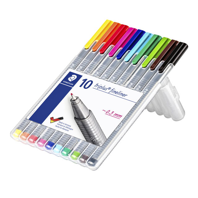 STAEDTLER is een Duitse onderneming, opgericht in 1835 in Neurenberg. Steadtler is de grootste fabrikant in volume van gummen, houten potloden en OHP pennen. Er werken wereldwijd meer dan 2.000 mensen bij deze fabriek in schrijfwaren, die met dank aan innovatie kracht en de typisch Duitse kwaliteit 'made in Germany' kunnen ze ook in deze moderne tijd nog steeds een mooie marktpositie innemen. Bij KantoorArtikelen.nl kun je online welhaast het hele Staedtler assortiment bestellen; fineliners, gummen, markeerstiften, potloodslijpers, tekstmarkers en viltstiften. Vrijwel alle Staedtler artikelen in onze webshop zijn direct uit voorraad leverbaar. Als je een product van Staedtler koopt, dan maak je de juiste keuze.
