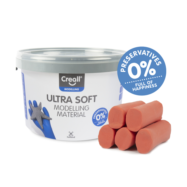 * Creall ultra soft klei is zeer soepel en gemakkelijk kneedbaar boetseermateriaal voor het jonge kind vanaf 2 jaar. * Zijdezacht. * Wordt niet hard, droogt niet uit en is steeds opnieuw te gebruiken. * Ondersteunt de ontwikkeling van de fijne motoriek. * Naast de ontwikkeling van pols en duim gewricht, worden ook de vingers afzonderlijk gestimuleerd. * Wanneer de klei wat stugger aanvoelt verdeel de rollen klei dan in kleine plakken, op deze manier wordt de klei snel zacht en soepel. * Glutenvrij. * In handige emmer om de klei in te bewaren. * Kleur: rood. * Inhoud: 1100 gram.