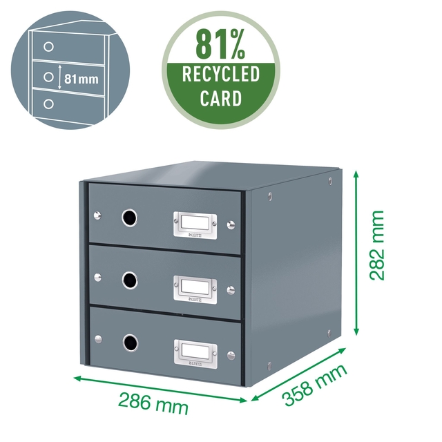 Ladenkast Leitz WOW Click & Store 4 laden gerecycled karton zwart