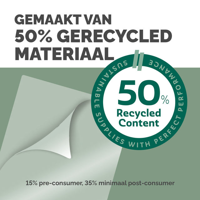 Geef je documenten een nette, professionele uitstraling met deze A5 lamineerhoezen, ontworpen voor dagelijks gebruik en duurzame prestaties. Gemaakt van 50% gerecycled materiaal (minimaal 35% post-consumer, 15% pre-consumer) bieden ze betrouwbare bescherming en ondersteunen ze milieubewuste keuzes. De hoogwaardige matte afwerking zorgt voor veelzijdigheid en visuele aantrekkingskracht, ideaal voor een breed scala aan lamineertaken. Ontworpen voor gebruik op een instelling van 70/80 micron bevat elke hoes een antistatische toevoeging voor soepel en probleemloos gebruik. Verpakt in papiergebaseerde materialen uit duurzame bronnen, inclusief de hoesdrager, tape en buitenverpakking, is deze set van 100 hoezen een slimme keuze voor zowel thuis als op kantoor.