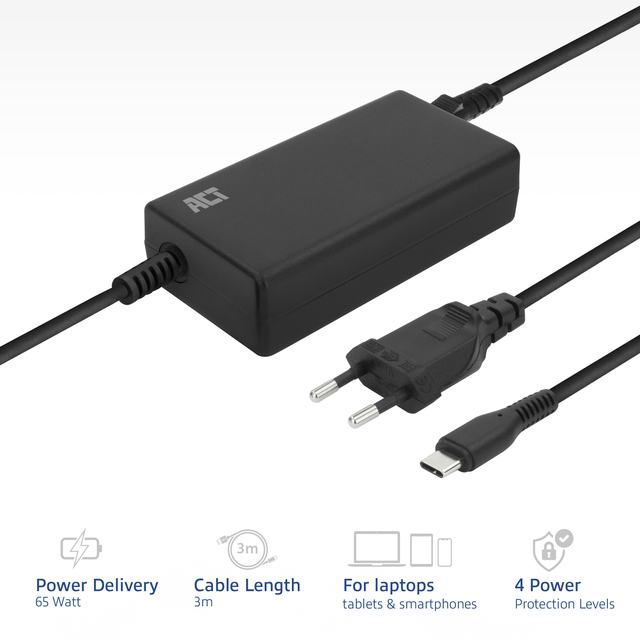 Laptop Oplader ACT USB-C Power Delivery 65W 3mtr