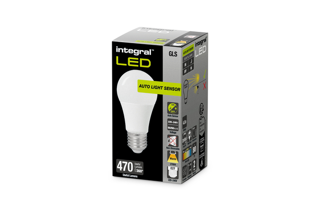 Ledlamp Integral E27 2700K warm wit 4.8W 470lumen dag/nacht sensor