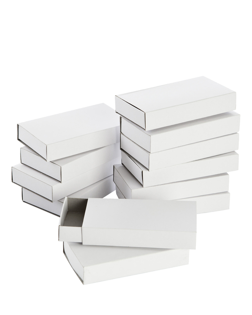 * Lege luciferdoosjes om me te knutselen. * Afmeting per doosje: 110x 60x20mm. * Deze set bevat 12 witte doosjes.