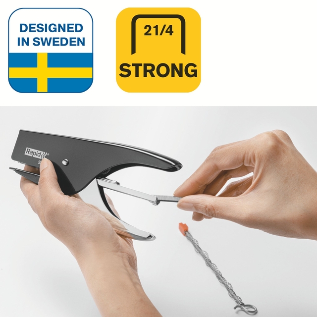 Rapid is een heel bekend merk als het om perforators en nietmachines gaat. Alle Rapid producten zijn ontworpen en gemaakt in Zweden. Wij kennen Rapid als een zeer hoogwaardig merk als het om kwaliteit, functionaliteit en eenvoud gaat. Ook qua look zijn ze in de loop van de tijd meegegaan en brengen ze aantrekkelijke nietmachines en perforatoren op de markt, zowel voor het thuiskantoor als blokhechters voor de professionele heavy-duty gebruiker. Vanzelfsprekend kan KantoorArtikelen.nl alle denkbare bijbehorende Rapid nietjes voor normaal gebruik en extra sterke nietjes uit voorraad aan je leveren. Als je een product van Rapid koopt, dan maak je de juiste keuze.