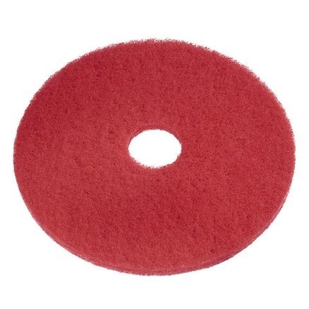 Rode pads middel worden gebruikt voor het spray reinigen van vloeren met lichte vervuiling. Deze pads zijn de meest gangbare pads. Ook geschikt voor linoleum. Diameter 355 cm. De boenpad wordt onder de pad gelegd en zal blijven kleven aan de padhouder. Het reinigingsmiddel_oplossing bepaald de mate waarin de vervuiling verwijderd kan worden. De pads liggen stabiel onder de machine waardoor er minder belasting van de apparatuur is en geeft minder risico op vloerbeschadigingen. De pad is om te schrobben te sprayreinigen van licht vervuilde vloeren en strepen. Hij kan tevens gebruikt worden voor te polijsten. Hij kan gebruikt worden op machines tot 350 TPM. Te gebruiken voor zowel de eenschijfsmachine en de schrobzuigmachines. Een meest gangbare pad voor het schoonmaken van uw vloer.