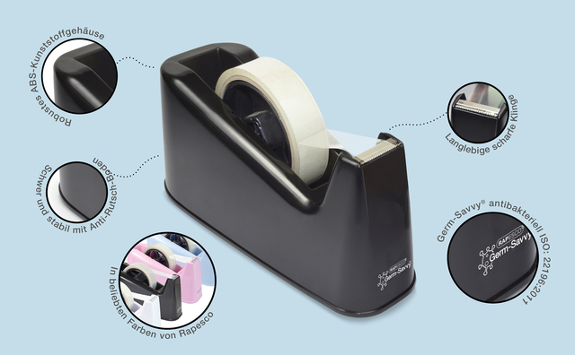 Plakbandhouder Rapesco Germ-Savvy 500 antibacterieel zwart