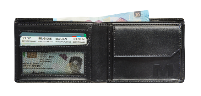 Portemonee Maverick All Black compact met kleingeldvak RFID leer zwart
