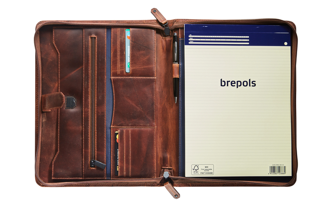 Schrijfmap Maverick The Original A4 met rits inclusief schrijfblok leer bruin