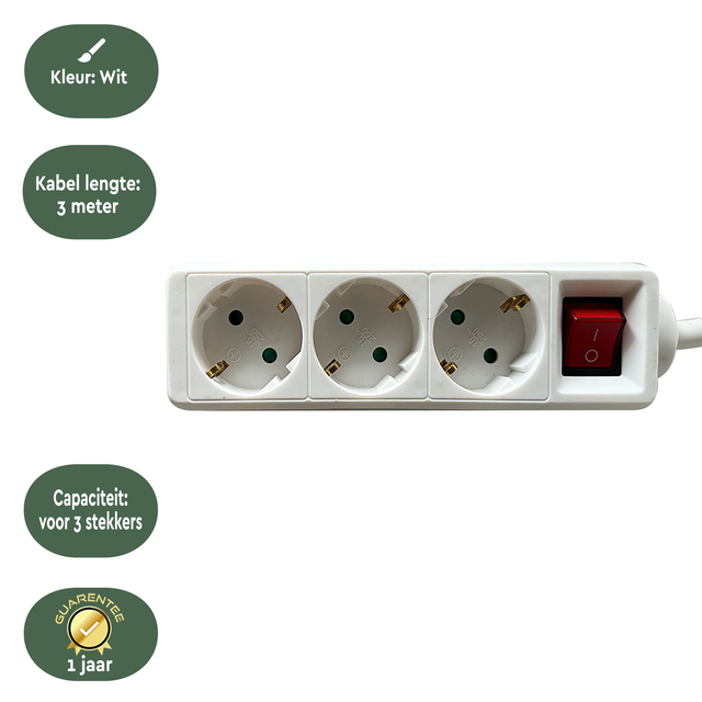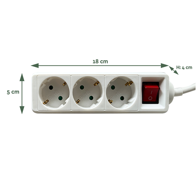 * Nooit meer een stopcontact te kort! Deze BRASQ Stekkerdoos, in witte kunststof uitvoering, met 3 stopcontacten is een echte handige must-have en een onmisbaar hulpmiddel in het moderne huishouden en op kantoren. Sluit al je elektrische apparaten aan, zoals tv's, huishoudelijke apparaten, gadgets en (spel)computers aan op deze 3-voudige stekkerdoos met schakelaar. De stekkerdoos met 3 sockets, die geschikt is voor binnenshuis gebruik, is voorzien van geaarde stopcontacten en een hoofdstekker met randaarde. De stekkerdoos is direct klaar om te gebruiken en geschikt voor geaarde en niet-geaarde apparaten. Met zijn handige aan-uit schakelaar kun je gemakkelijk de toevoer van elektriciteit regelen, waardoor je zelf ook het energieverbruik in huis of kantoor bepaald. De schakelaar is uitgerust met verlichting, zodat je ook in het donker duidelijk kunt zien of de schakelaar is ingeschakeld of niet. Door de handige schuine plaatsing van de stopcontacten kunnen er makkelijker haakse stekkers op worden aangesloten. * De stekkerdoos met schakelaar voldoet aan alle veiligheidseisen die betrekking hebben op dit product. Hij is voorzien van een ROHS, TUV GS en CE certificaat. * De contactpunten zijn voorzien van kinderbeveiliging. Door het gepatenteerde systeem is het niet mogelijk om voorwerpen in de stopcontacten te steken. * Overbelasting van een stekkerdoos kan leiden tot oververhitting en zelfs brandgevaar. Daarom is het cruciaal om te weten wat het maximale vermogen is dat de stekkerdoos aankan en deze limiet niet te overschrijden. * De zekering of overspanningsbeveiliging beschermt de aangesloten apparaten tegen piekspanningen en kortsluitingen. * Bovendien is het belangrijk om stekkerdozen regelmatig te controleren op tekenen van slijtage, beschadiging of loszittende onderdelen. * Met de BRASQ Stekkerdoos haal je dus kwaliteit en veiligheid in huis! * Afmetingen: 18 x 5 x 4 cm (lxbxh) * Capaciteit: 3 stekkers * Materiaal: Kunststof * Hoofdschakelaar: Aan/uit schakelaar * Voeding: Netstroom * Hoofdstekker: Randaarde * Stopcontact: Schuko Type F (randaarde) * Aansluiting: 3-polig * Max. belasting: 3600W Nominale stroom: 230V/16A * Draaddikte: 3 x 1,5mm * Kinderbeveiliging: Ja * Kabellengte: 3 M * Keurmerken: ROHS, TUV GS en CE certificaat * Garantie: 1 jaar