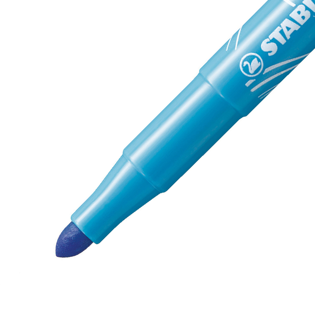De STABILO Power max viltstiften hebben een bijzonder hoogwaardige en drukbestendige XL punt. Ze kunnen tot 8 weken zonder dop zonder uit te drogen. Ideaal voor kleine kinderen die de dop wel eens vergeten. Bovendien is de inkt in de pennen uitwasbaar - kleine vlekjes zijn dus geen probleem. Extra dikke viltstift STABILO power max Classpack met 96 kleurstiften.