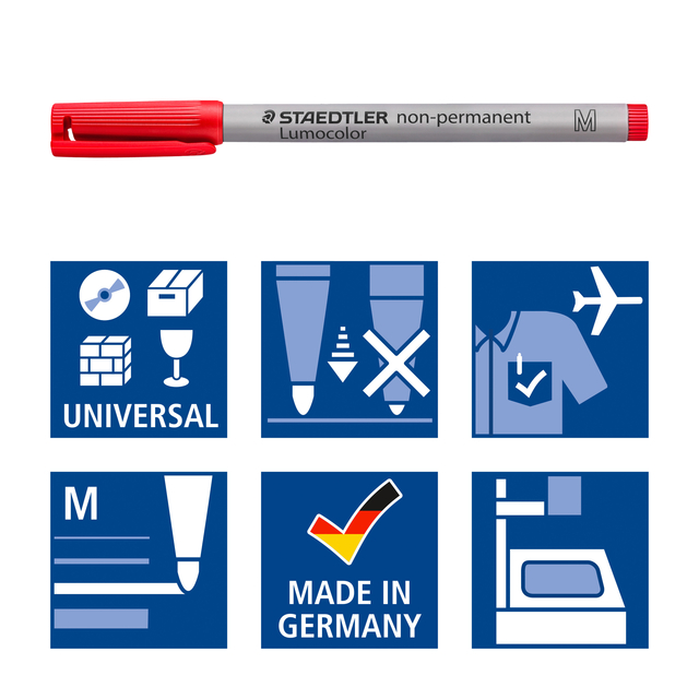 STAEDTLER is een Duitse onderneming, opgericht in 1835 in Neurenberg. Steadtler is de grootste fabrikant in volume van gummen, houten potloden en OHP pennen. Er werken wereldwijd meer dan 2.000 mensen bij deze fabriek in schrijfwaren, die met dank aan innovatie kracht en de typisch Duitse kwaliteit 'made in Germany' kunnen ze ook in deze moderne tijd nog steeds een mooie marktpositie innemen. Bij KantoorArtikelen.nl kun je online welhaast het hele Staedtler assortiment bestellen; fineliners, gummen, markeerstiften, potloodslijpers, tekstmarkers en viltstiften. Vrijwel alle Staedtler artikelen in onze webshop zijn direct uit voorraad leverbaar. Als je een product van Staedtler koopt, dan maak je de juiste keuze.