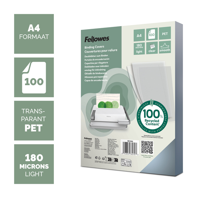 Voorblad Fellowes A4 PET 180micron recycled 100 stuks