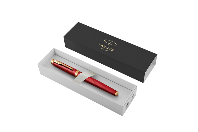 * De Parker IM Premium-vulpen is stijlvol, gepolijst en professioneel en een ideale partner met onbegrensde mogelijkheden. Het opvallende slanke model vult de iconische maar moderne ontwerpen naadloos aan. * Deze Parker-pen is een gedenkwaardig geschenk, vervaardigd met een zelfbewuste rood gelakte behuizing geëtst met een subtiel lijnmotief en geaccentueerd met een gouden afwerking. * Van het ontwerp tot de penpunt, gemaakt van duurzaam roestvrij staal en gevormd tot de optimale schrijfhoek, is ieder detail verfijnd om een schrijfervaring te bieden die direct betrouwbaar en trouw is aan het Parker-merkerfgoed van meer dan 130 jaar. * Te gebruiken met Quink-inktpatronen of aan te passen voor het gebruik van inkt uit een potje. * Inclusief vulling blauw.