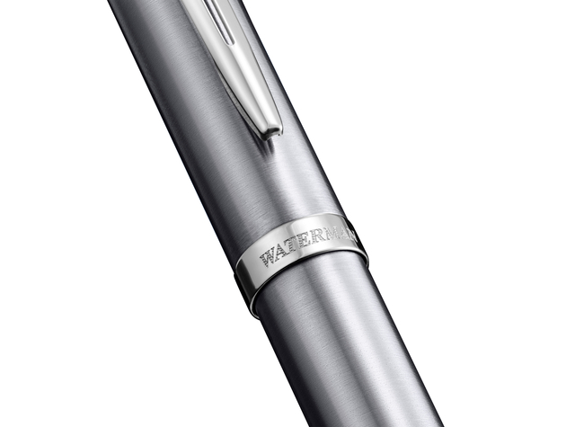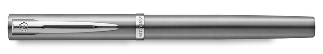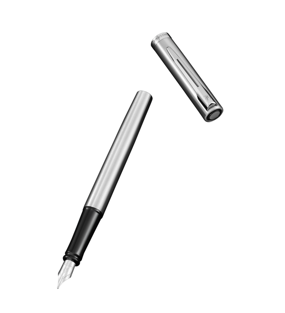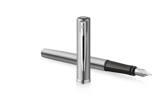 Maak indruk met Waterman Impression, waar verfijnd Frans vakmanschap en zelfverzekerde elegantie samenkomen. De slanke huls en dop, afgewerkt met geborsteld roestvrij staal, komen samen om een elegante en blijvende indruk te creëren. De Impression is voorzien van een brede, met palladium gecoate dop met ring en de kenmerkende dubbelvertakte clip van Waterman, en is ontworpen om vanaf de allereerste beweging tot gedurfde expressie te verleiden. De roestvrijstalen penpunt, gegraveerd met Watermans iconische gekrulde 'W', zorgt voor een soepele, nauwkeurige inktstroom, ideaal voor dagelijks gebruik. Met zijn zorgvuldig uitgebalanceerde gewicht ligt de pen comfortabel in de hand, waardoor een gevoel van evenwicht en controle wordt geboden. Impression is vervaardigd in Frankrijk en weerspiegelt meer dan 140 jaar vakmanschap van Waterman. Hij wordt geleverd in de kenmerkende geschenkverpakking van Waterman en is het ideale pronkstuk − voor uzelf of iemand die altijd een blijvende indruk achterlaat. * Inclusief vulling blauw.