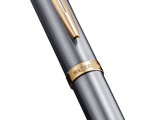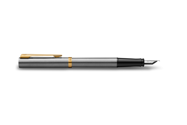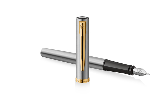 Maak indruk met Waterman Impression, waar verfijnd Frans vakmanschap en zelfverzekerde elegantie samenkomen. De slanke huls en dop, afgewerkt met geborsteld roestvrij staal, komen samen om een elegante en blijvende indruk te creëren. De Impression is voorzien van een brede, met goud gecoate dop met ring en de kenmerkende dubbelvertakte clip van Waterman, en is ontworpen om vanaf de allereerste beweging tot gedurfde expressie te verleiden. De roestvrijstalen penpunt, gegraveerd met Watermans iconische gekrulde 'W', zorgt voor een soepele, nauwkeurige inktstroom, ideaal voor dagelijks gebruik. Met zijn zorgvuldig uitgebalanceerde gewicht ligt de pen comfortabel in de hand, waardoor een gevoel van evenwicht en controle wordt geboden. Impression is vervaardigd in Frankrijk en weerspiegelt meer dan 140 jaar vakmanschap van Waterman. Hij wordt geleverd in de kenmerkende geschenkverpakking van Waterman en is het ideale pronkstuk − voor uzelf of iemand die altijd een blijvende indruk achterlaat. * Inclusief vulling blauw.